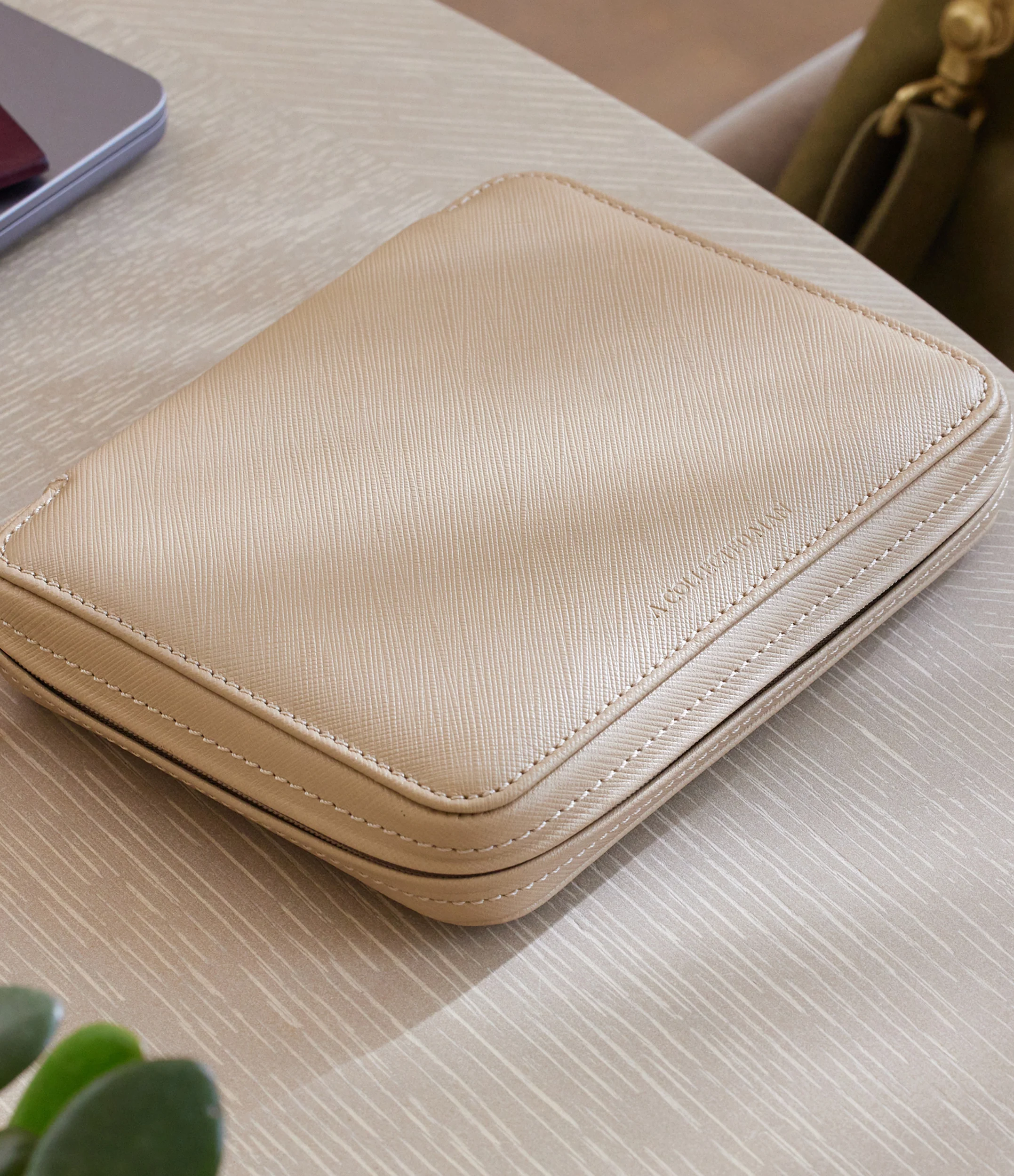 A svelte, secure and versatile travel accessory, our four-watch folio safely stores your watches while you’re on the move. Handmade in France by skilled craftsmen from neutral, linen Saffiano leather, it’s a slim case with a timeless, textured finish, featuring ‘A Collected Man’ subtly debossed on the surface.