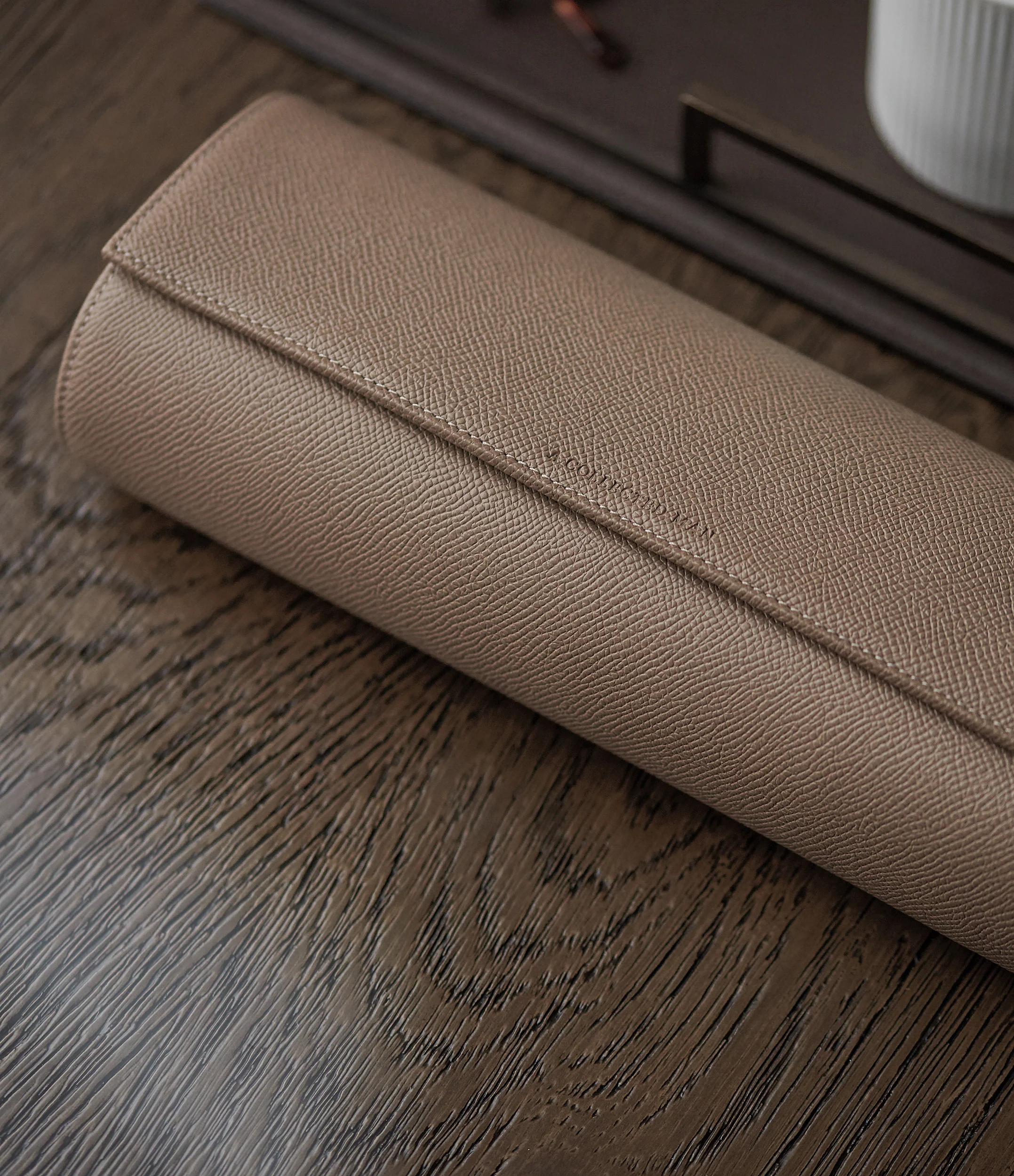 Whatever watch you decide to wear, they’ll be safe and easily accessible in the roll. It opens and closes with a simple press stud fastening and features ‘A Collected Man’ subtly debossed on the surface. Designed with a removable cushion for ease, it’s lined in soft, complementary taupe Alcantara, making it the perfect home for your most-loved pieces.
