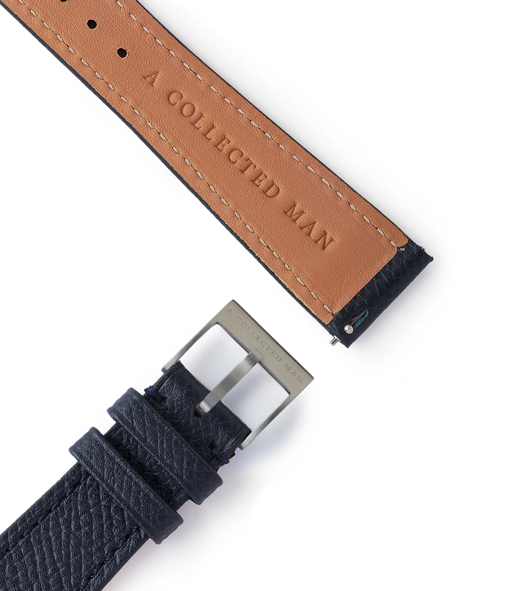 With a shade reminiscent of the midnight sky, this deep blue strap is a sophisticated choice for the collector looking to showcase their favourite pieces. The strap features matching open stitching in a deep navy.