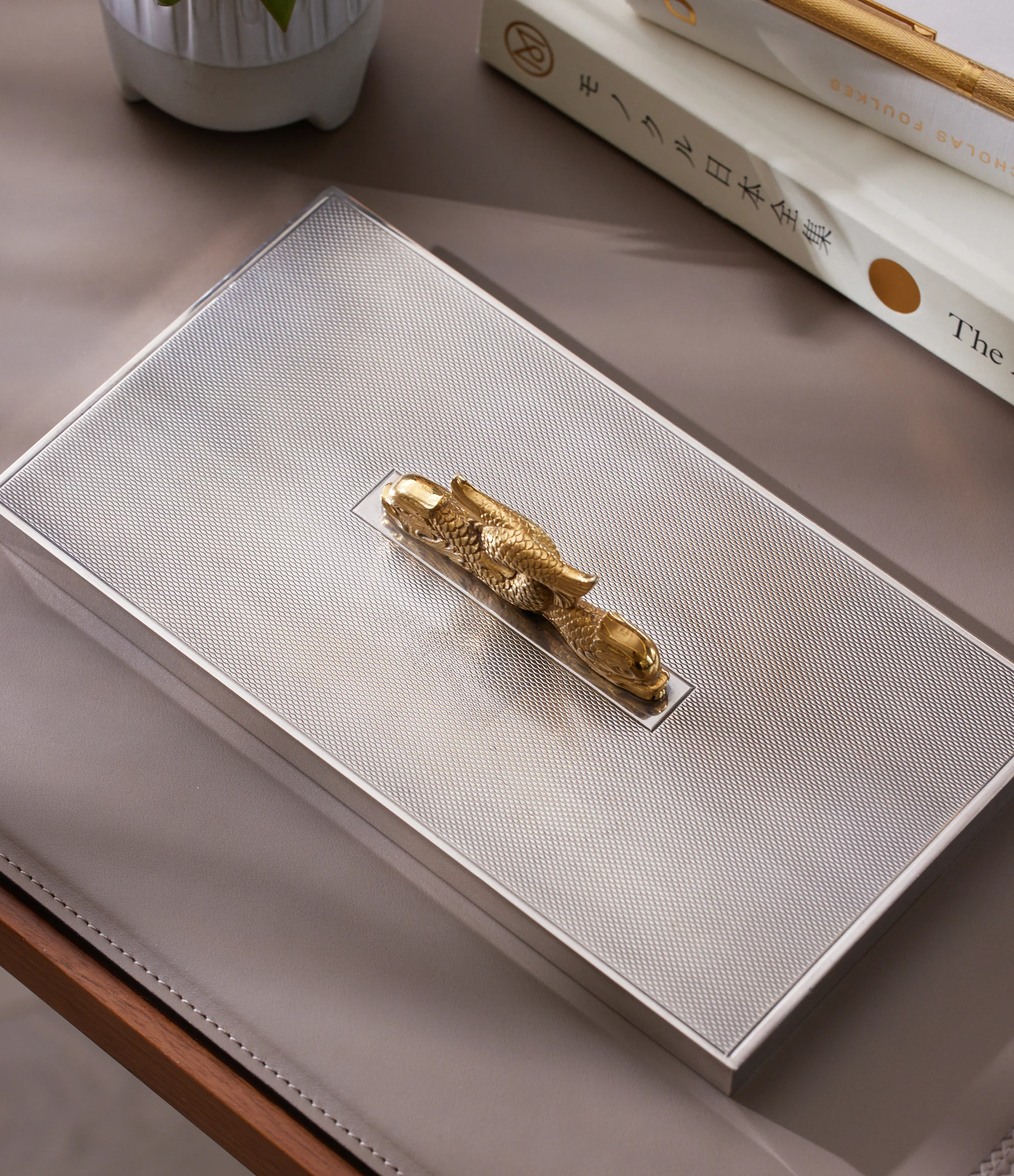Sleek and sophisticated, this table cigarette box is a mid-century design by Ravinet d’Enfert for Hermès. A slim, rectangular box designed to house cigarettes, it’s reminiscent of a time gone by and is now often used as a decorative object.