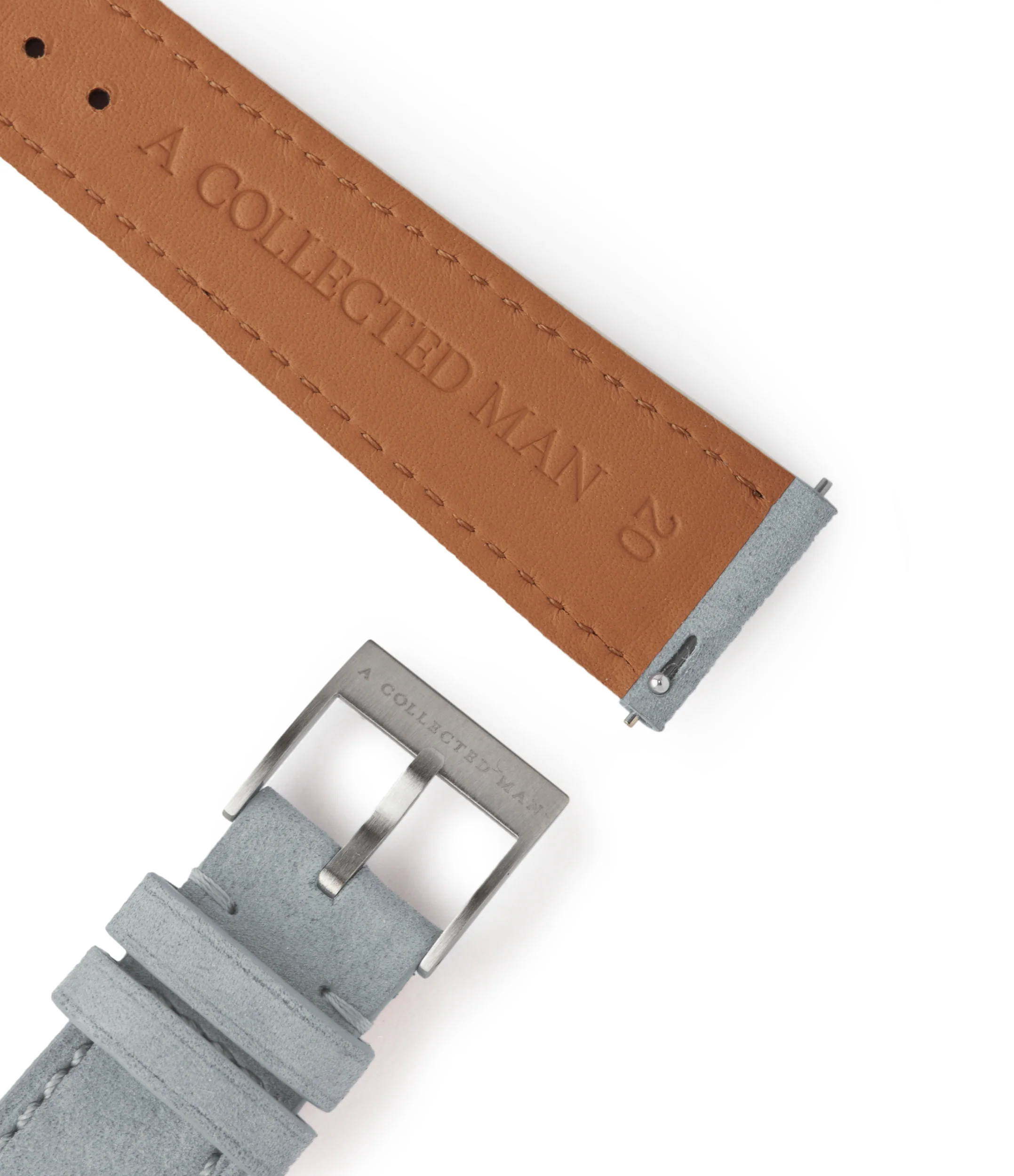This cool-toned strap is a light shade of grey akin to a stone quarry, providing a softer touch to your chosen watch. The strap features open stitching in a matching grey colour.