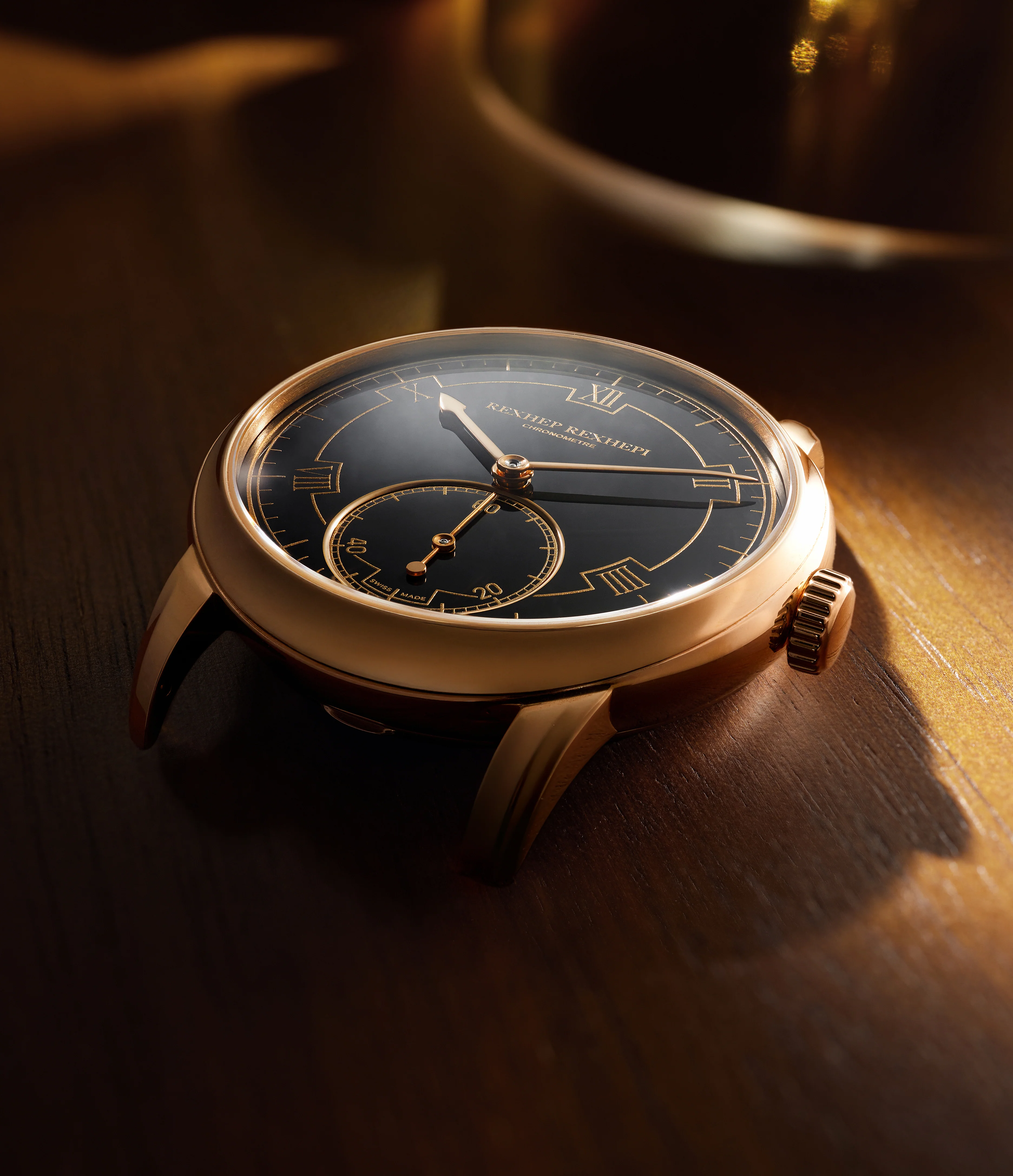 | Strap: | Rexhep Rexhepi brown leather strap, Rexhep Rexhepi rose gold pin buckle |