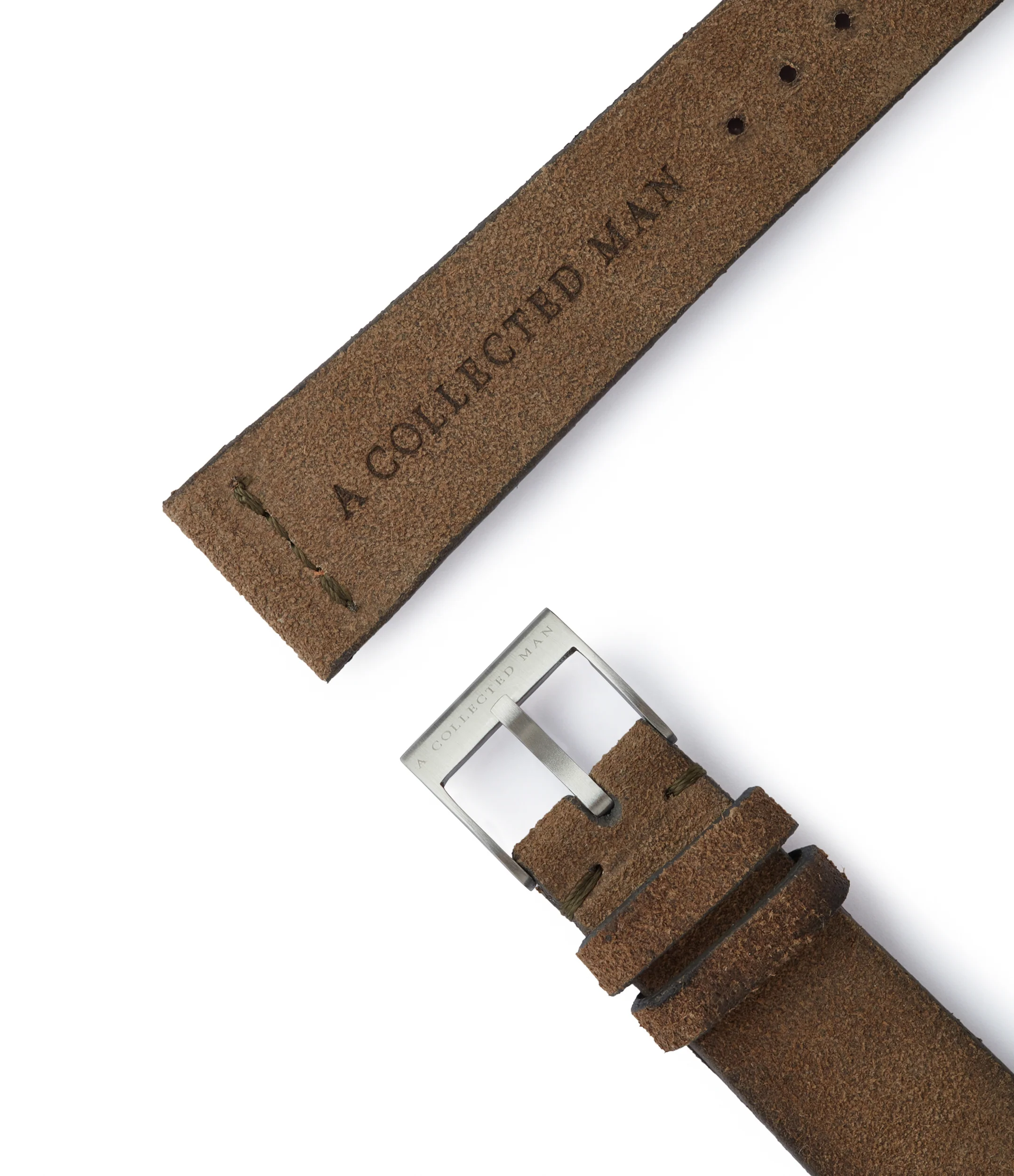 Conjuring images of travel and adventure, the safari khaki tan shade found on this strap is a versatile shade of brown. The straight stitching found on this strap is in olive brown, giving it a more rugged yet relaxed feel.