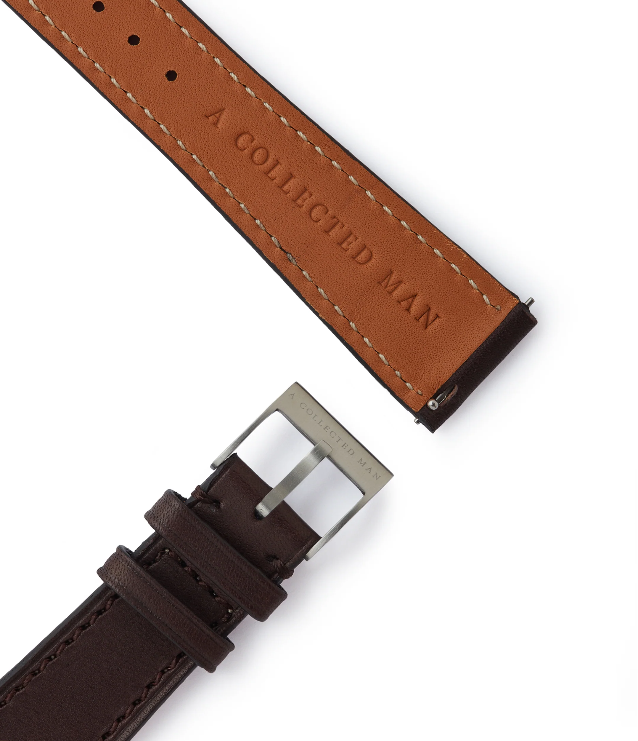 Crafted in Belgium by master leatherworkers, the smooth leather of this strap is made from calf skin and sourced from French tanneries. The texture is especially soft and buttery, allowing it to sit comfortably on the wrist.