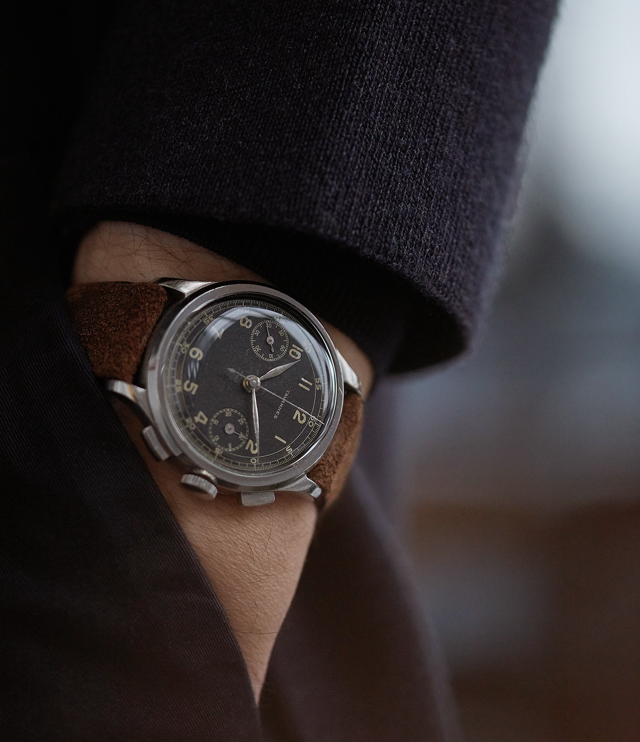 A deep brown shade comparable to a muted tan that exudes a vintage charm, this strap is a classic colour that is highly versatile and would not look out of place on a traveller. This is accompanied by straight stitching in dark brown.