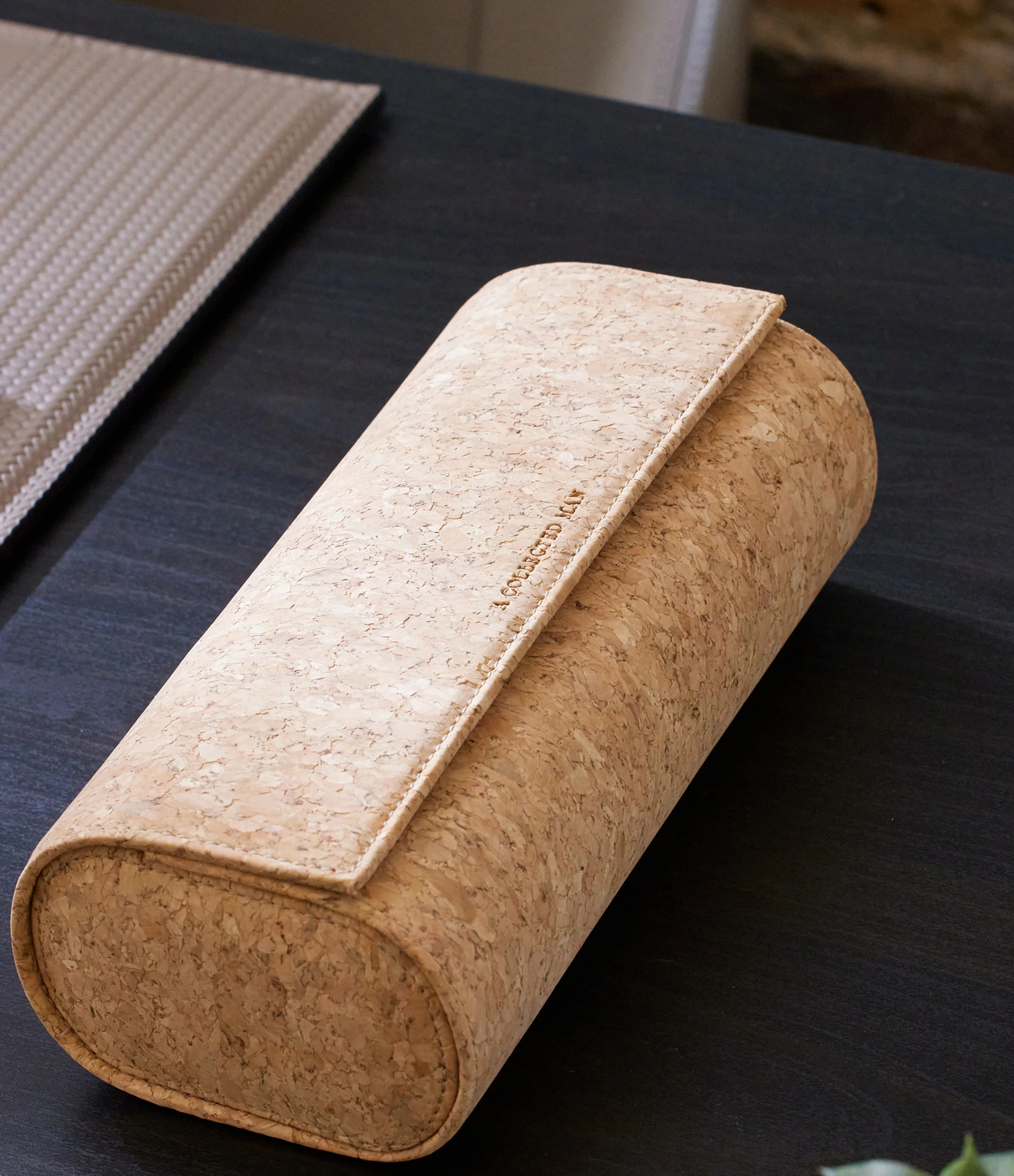 Designed as a stylish and secure home for your favorite watches, our three-watch roll is an essential accessory for those who like to travel with a choice of watches, or for daily storage at home. It is handmade in Tuscany, Italy, by skilled craftsmen from locally sourced, vintage-inspired cork, harnessing the traditional methods of this prestigious region. it possesses a long, oval-shaped design that offers a distinctive alternative to leather.