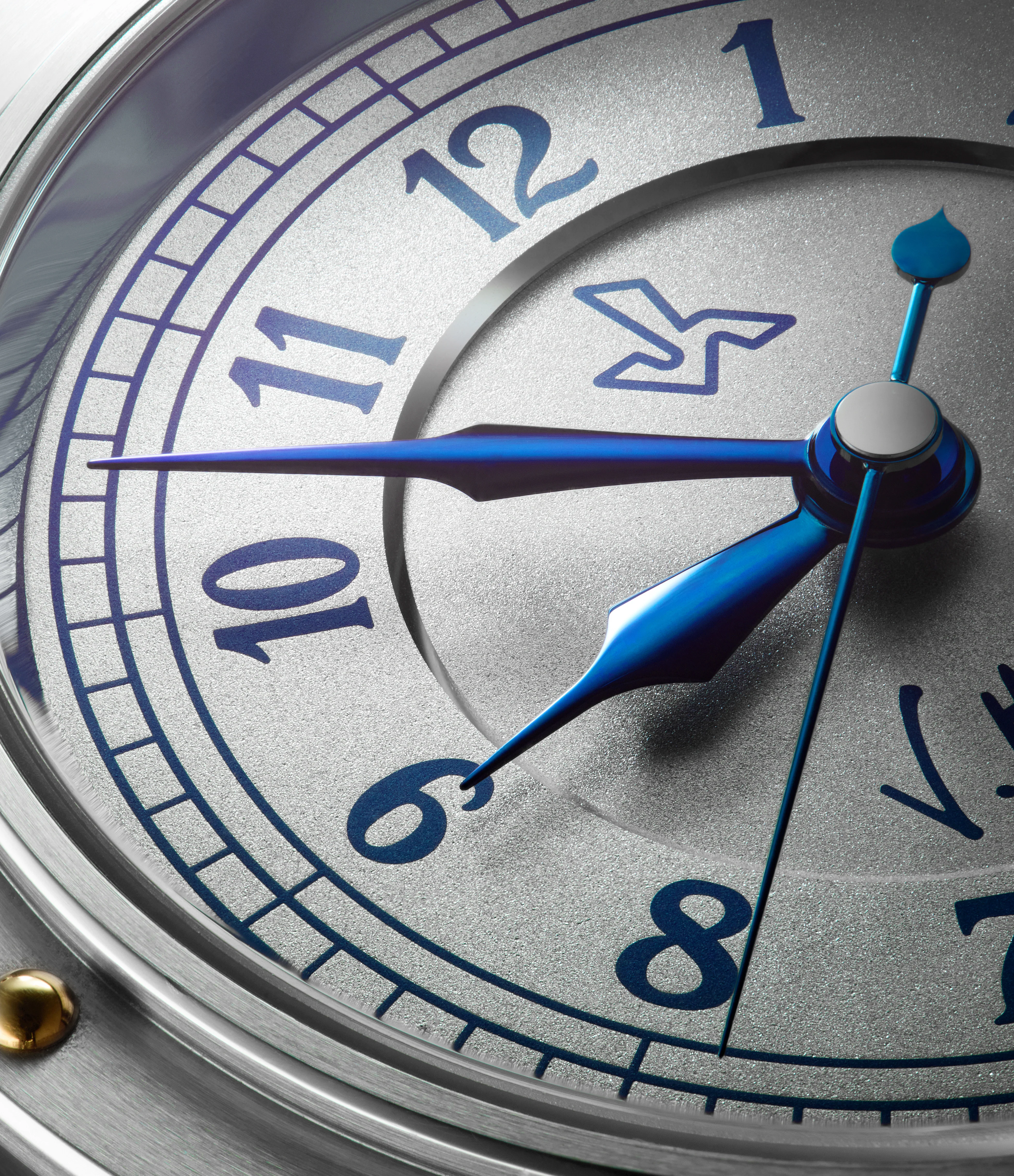 In this example, the yellow gold rivets are a touch that further distinguishes this piece, conjuring images of two-tone vintage pieces. According to the original owner, no others were made with this exact configuration of blued hands, blue numerals and yellow gold rivets.