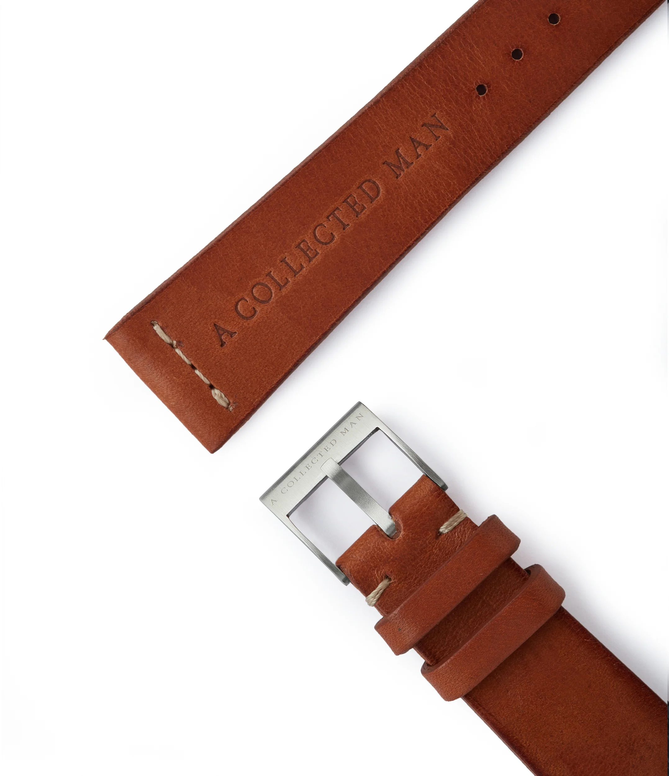 Conjuring images of travel and adventure, the roasted caramel shade found on this strap is a versatile shade of brown. Matching straight stitching in brown blends seamlessly into the leather.